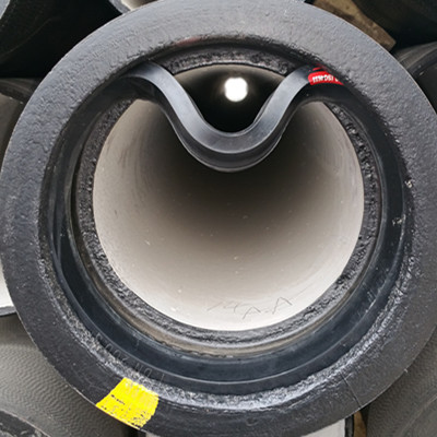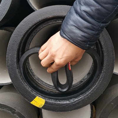 1. 對于較小規(guī)格的球墨鑄鐵管膠圈,將其彎成“心”形放入承口密封槽內。如下圖