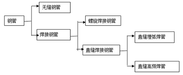 焊接鋼管和無縫鋼管兩類。焊接鋼管是指由鋼板卷焊制作的鋼管,按焊縫形式分為螺旋焊接鋼管和直縫焊接鋼管兩種,見下圖